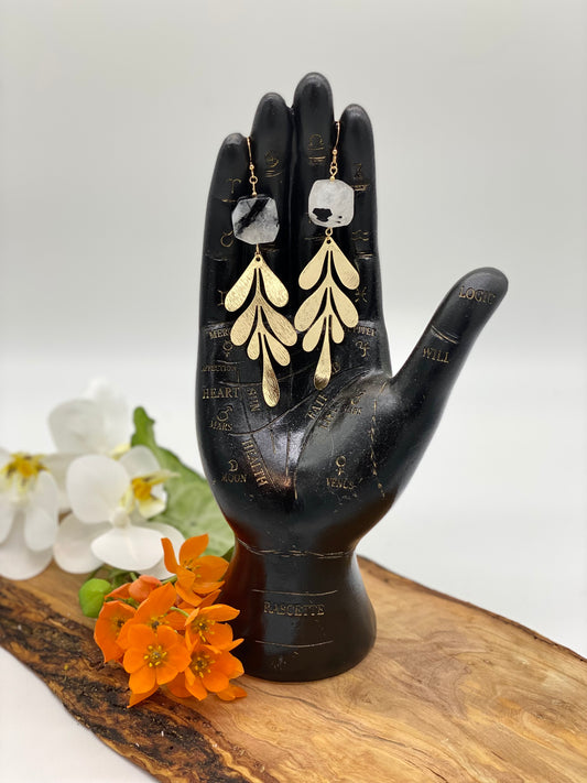 Rutilated Quartz and 24k Gold Dangle Earrings