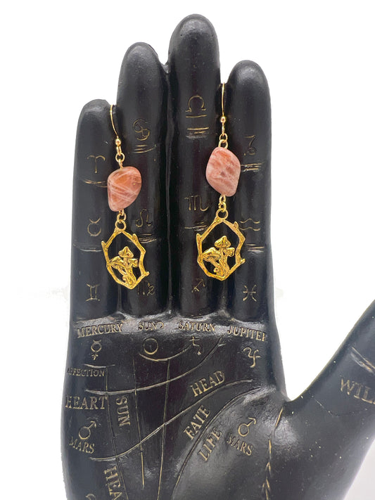Sunstone & 24k Gold Plated Mushroom Dangle Earrings