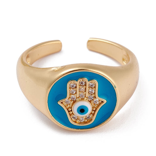 Hamsa & Evil Eye Enamel Ring 18K Gold Plated